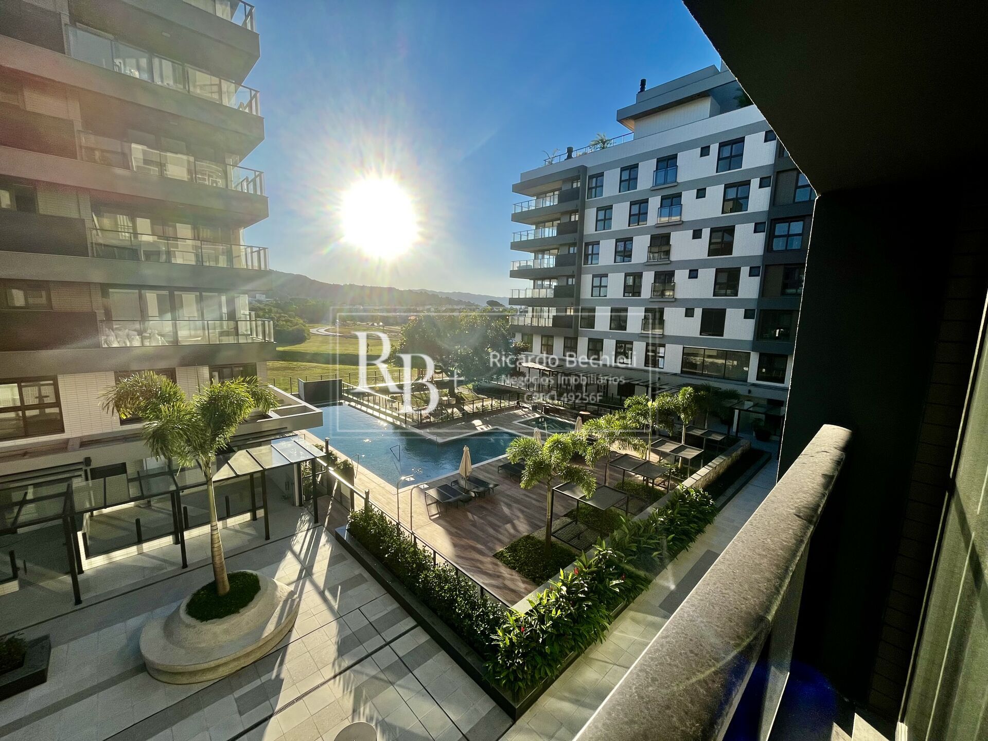 Apartamento possui vista livre para área social, piscina e área verde do parque. Posição solar privilegiada com incidência solar excelente. O sol da tarde ilumina todos os ambientes do apartamento. Espaço arejado e muito claro devido as amplas aberturas das janelas.